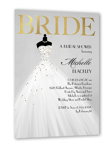 Dreamy Wedding Dress 5x7 Bridal Shower Invitations. Celebrate the bride-to-be with this bridal shower invitation. Add the celebration details and a favorite photo